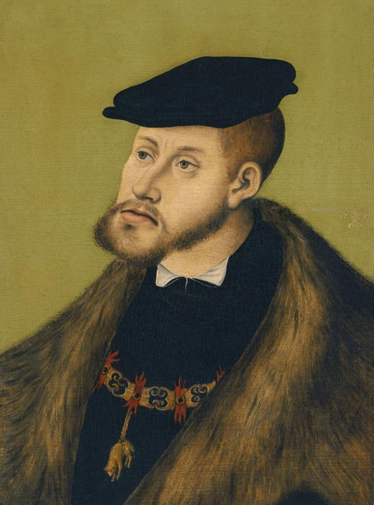 但是在歐洲不同,上文說了,除了戰爭,婚姻政治也相當的重要。哈布斯堡家族最初跟西班牙並沒有關係,他們實際控制著奧地利一些地區,但是哈布斯堡家族的腓力一世(他是卡洛斯五世的父親)在1496年娶了西班牙卡斯提爾王國的喬安娜;這位女主角是當時西班牙大部分地區的實際繼承人,腓力一世通過喬安娜這塊跳板,經過了10餘年的政治角逐,在1506年成為了卡斯提爾王國的統治者。1516年的時候卡洛斯五世也就是腓力一世的兒子繼承為王位,並且改朝換代,開始了哈布斯堡王朝對西班牙的統治。卡洛斯五世深知自己的父親是如何投機倒把登上王位的,因此就決定在自己家族內實行嚴格的家族通婚,目的為了保住王朝,沒想到此舉之上自己的王朝經歷了短短了186年就覆滅了。下圖是卡洛斯五世: