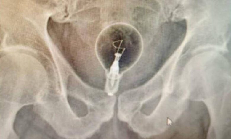 老翁在多次嘗試自行取出異物未果後,因過於疼痛才拉下面子打電話向醫院求救。在經過醫師檢查後,X光片上竟拍出有一顆完整的燈泡卡在肛門裡。事後,醫生用手術鉗才成功將燈泡取出,並安排住院治療觀察情況,所幸老翁並無大礙。