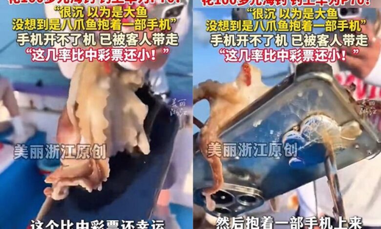 超扯!海邊釣魚居然可以免費獲得一隻泡水的華為P70手機,當時遊客乘坐漁船出海,花錢體驗海上釣魚,幸運釣到一隻小章魚,最讓人意想不到的是,這隻小章魚死抓著一隻手機不放,順利釣上來後,連漁船老闆娘都說生平第一次遇到。