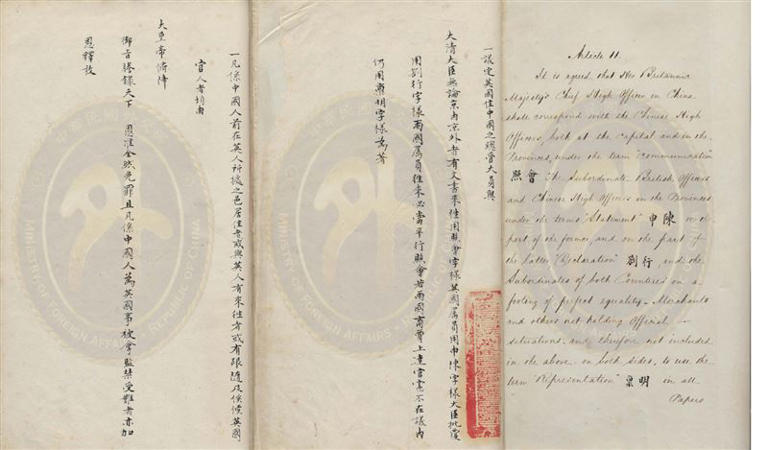 《南京條約》是清朝首個因對歐美國家戰敗而簽訂的條約。主要條款是大清國割讓香港島和開放五口通商(廣州、福州、廈門、寧波和上海)。(圖/翻攝維基百科)