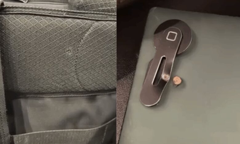 生財工具在危急時刻卻能保命?近日有名男子赴巴西出差,卻遇到蒙面歹徒要對他搶劫,當下他也嚇得護住後背包的貴重行李、並拔腿就跑,歹徒也朝他的方向連開兩槍。事後男子在機場準備出境過安檢時發現,發現背包中的筆電竟然為他「擋下一顆子彈」,只見畫面中一個像小銅塊似的子彈嵌在筆電外殼上,十分驚險。
