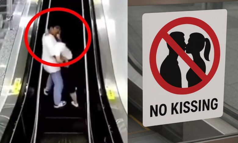 熱戀中的情侶們,總喜歡時時刻刻膩在一起,即使身處人潮眾多的公共場合,也毫不避諱地展現親密的舉動,這似乎已經成為了大家習以為常的景象。然而,近日在網路上流傳著一段監視器錄影畫面,一對年輕愛侶在搭乘手扶梯的時候,女生突然情不自禁地想要上前擁吻,沒想到卻意外地發生了一件讓人意想不到的糗事。這段影片曝光之後,立刻引起了廣大網友的熱烈討論,不少網友看完後紛紛留言表示「抱歉,我不小心笑了出來!」。