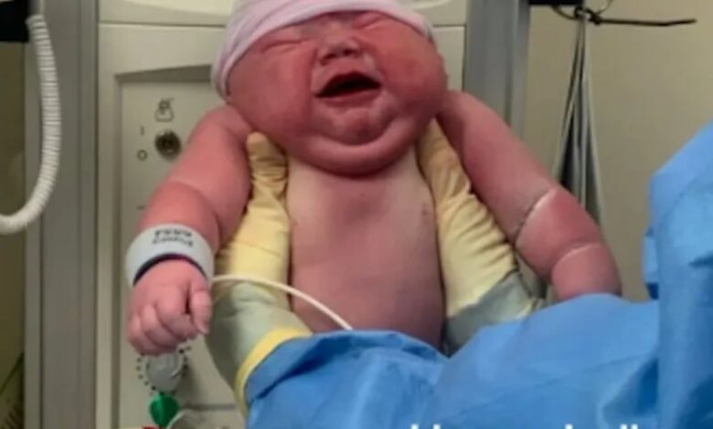 從片段可見,Shelby挺著十分巨大的孕肚站在病房內,其後畫面一轉,就是剛出生的寶寶Cassian,他「肥嘟嘟」且「身材魁梧」的身體幾乎塞滿了整張嬰兒床,醫護人員抱著他時,臉上的肉肉更如像「滿溢了出來」一般。
