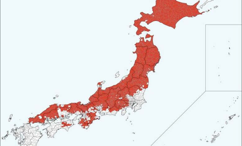 名為「える」的日本網友分享一張日本地圖,只見日本的北海道、東北地區、關東地區、中部地區、近畿地區、中國地區到四國地區,都有地方被塗上紅色,僅有九州地區、離島等區域留白。原PO解釋,紅色區塊代表2025年1月至10月,當地市、町或村有人目擊熊出沒的紀錄。