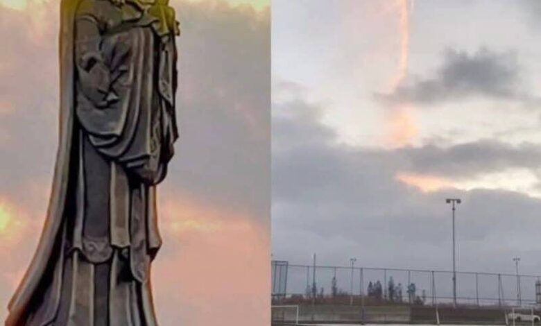 網友發文「家人在中山國小天空拍到的景象,怎麼看都覺得是祢!謝謝守護著澎湖的祢-澎湖媽祖,天上聖母。」,並附上重光媽祖與雲朵形成的影像,製作對比圖,真的十分神似,也讓民眾相當震驚,吸引4萬餘人次高流量瀏覽率。