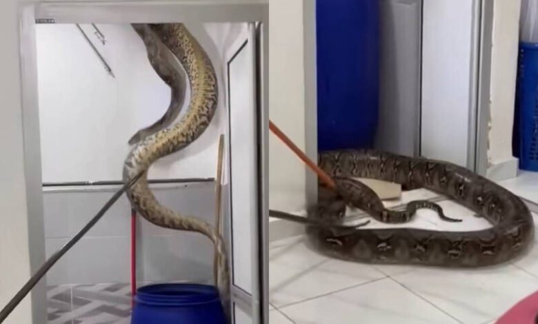 當地民防部隊獲報後到場,先以長桿敲擊天花板確認位置,沒多久巨蟒粗壯的尾巴突然衝破天花板墜落,嚇得隊員紛紛後退。之後眾人合力上前,經一番拉扯才制伏巨蟒。現場畫面顯示,巨蟒粗如成年男子手臂,幾乎能橫跨整間浴室。
